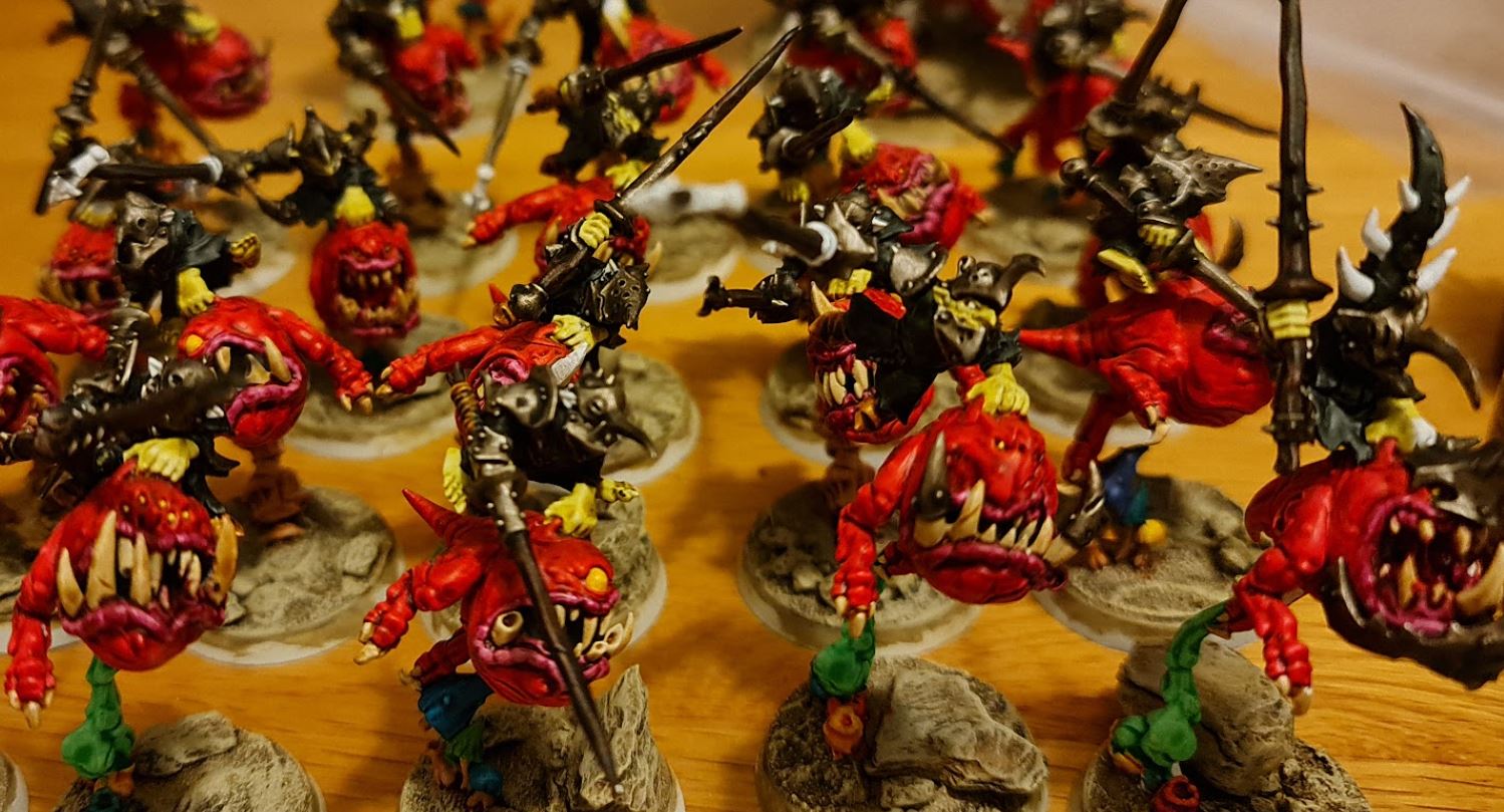 The next 20 minis for the Squig army are done! These chaps have actually been sitting in a state of near-completion for a long time. After finishing up my Squig Herds, I returned to them to finish them off.