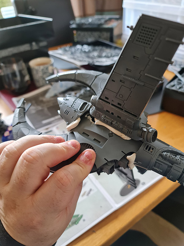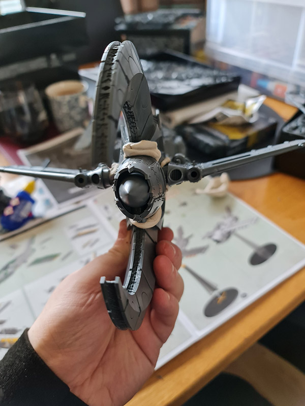 I will add in some more bitz and pieces, and fill some gaps. I need to get a suitable pilot for the ship as well. I’ll have to see what I have for that. The seat definitely needs filled in as well, as you can definitely see where I cut away the Ork pilot.