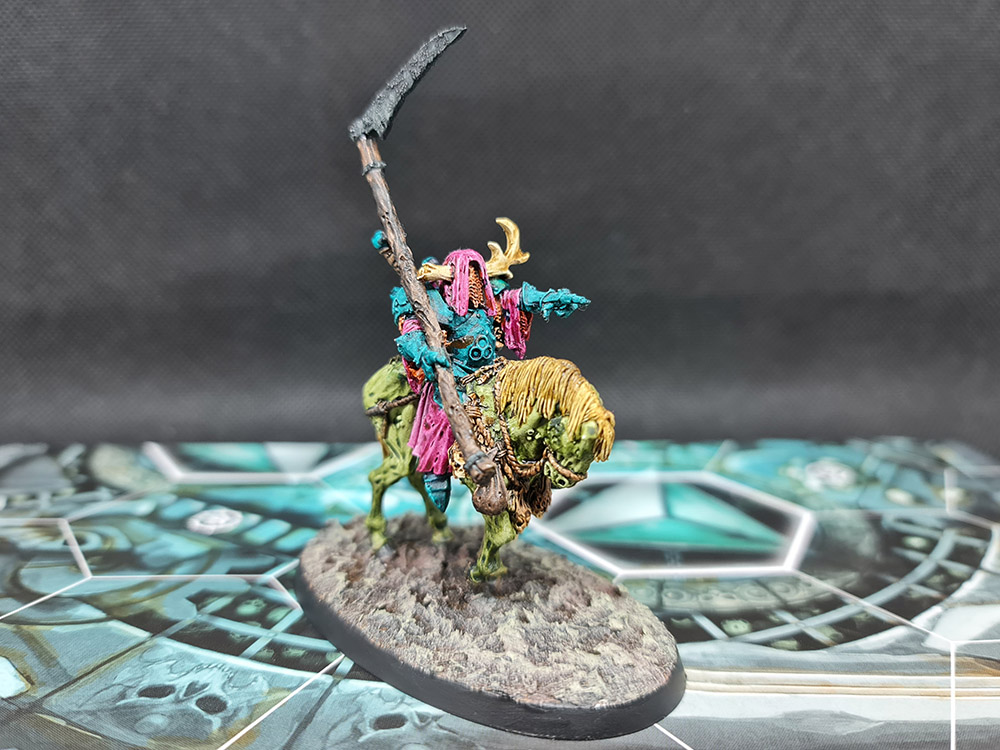 I kept Neferata in front of me as I worked to replicate her colour scheme over to this miniature. I’m actually getting through this one a lot quicker than I’d expected. That’s unusual and satisfying.