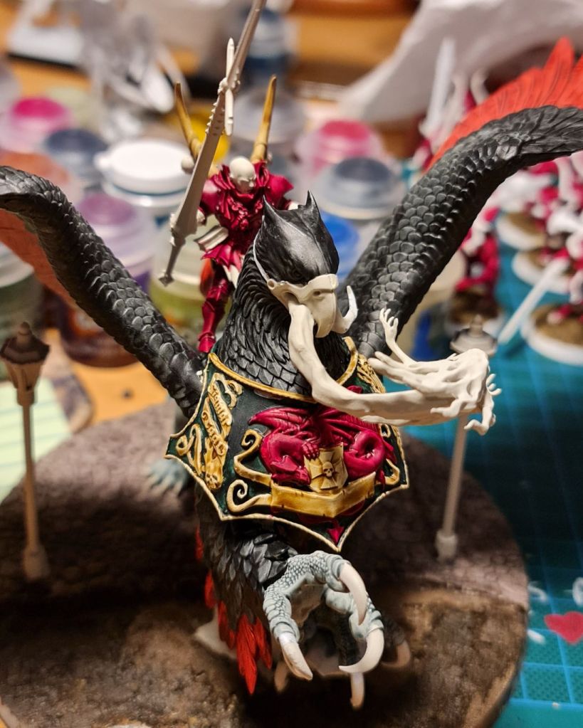 I also picked up another model that was sitting in front of me; namely my Vampire Lord on “Zombie Dragon”. Regular readers will understand the need for those inverted commas, as the mini is actually a Griffin instead of a dragon. It fits the theme.