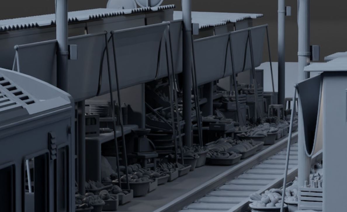 ATLAS has pulled together a really cool 3D model to represent a small stretch of the market, and it appears to be really bursting with detail. There’s loads here, with the tracks and train, the surrounding buildings, and the market stalls themselves. There’s even loads of little bits of produce!