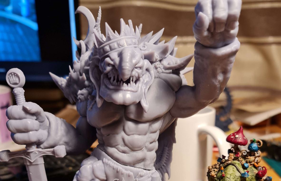It took 5 build plates, each taking around 12 hours to print. I could probably have optimised these better, thereby cutting down the overall print time quite substantially. I’m not to this, though. I finished up the Mega, and I built him. The hardest bit was actually attaching him securely to his base, and I ended up using some green stuff, just to give him that really secure connection. I also printed up a Troggoth King, who could proxy in as an Aleguzzler Gargant: