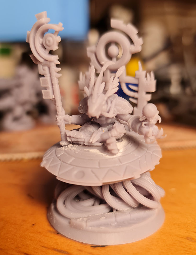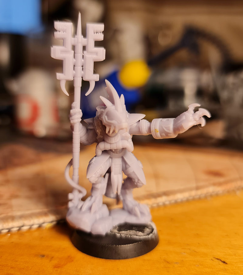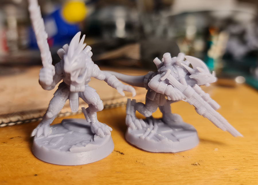 The Gator Vet looks fantastic, though I did damage his tail a little when removing some slightly misprinted supports. Nothing too bad, though. I also really like the Gecko Priest and the Starseer. The wee platform for the Starseer is really cool, and makes me want to print up the Slann-like Frog Mage at some point. Not right now, though. I think I’ve got enough there to be getting on with.