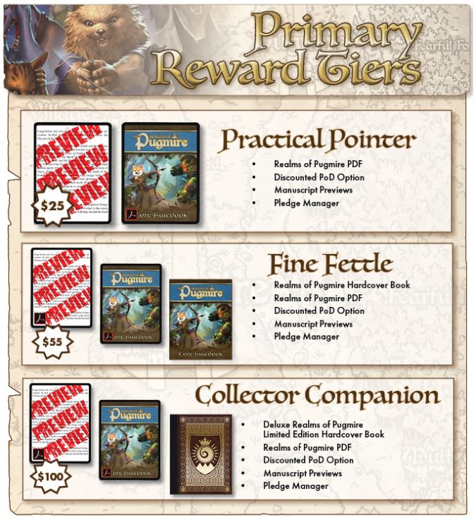 The book will come in a few different forms. Backers will get manuscripts to acts as previews of the finished game. There’s then a few different tiers that offer combinations of PDF, print editions, and limited editions: