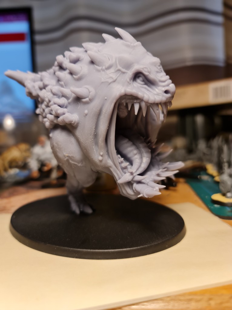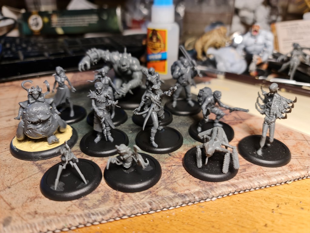 Also on there are some Malifaux minis, a 3D-printed Krondspine proxy, and a 3D-printed Colossal Squig.