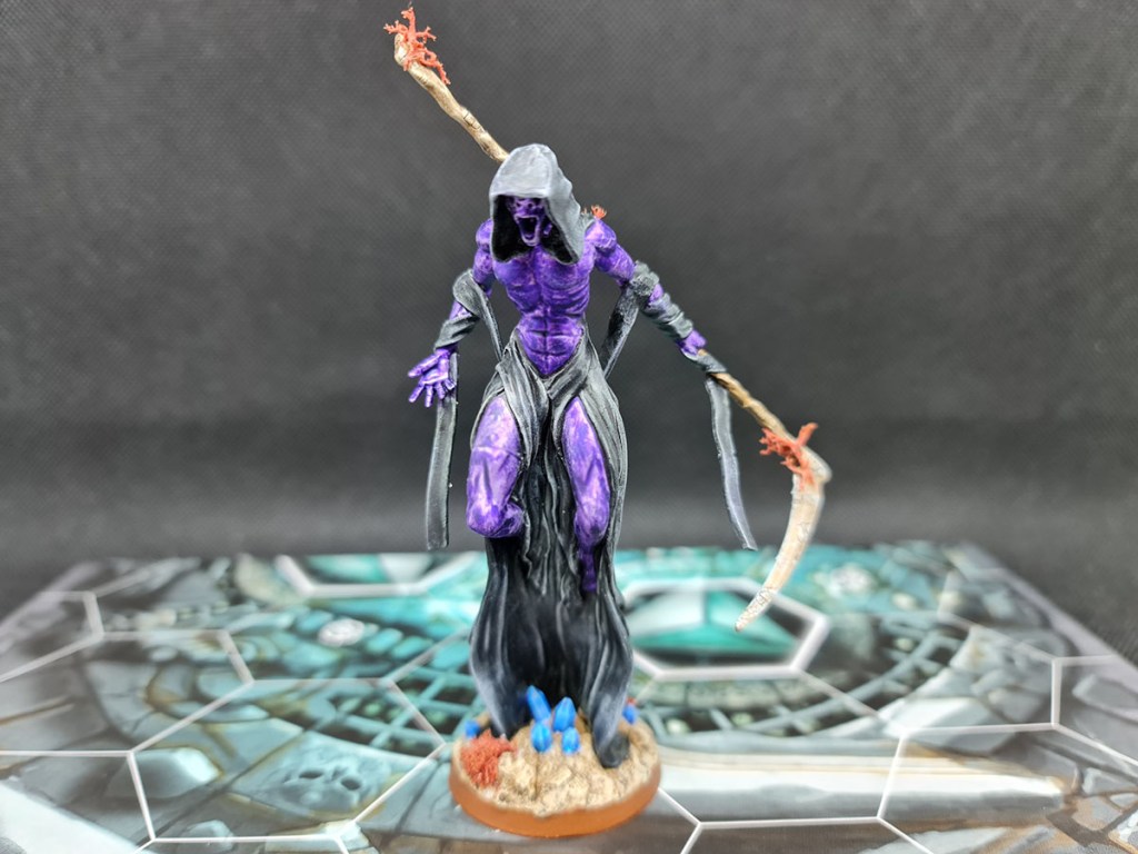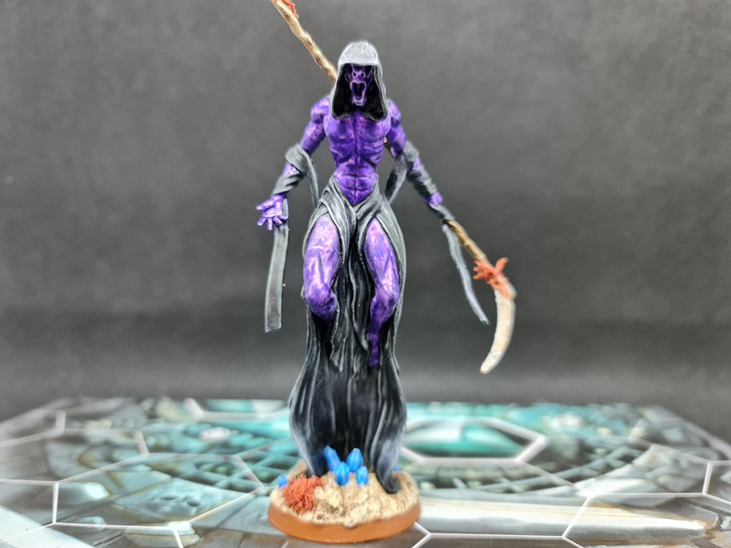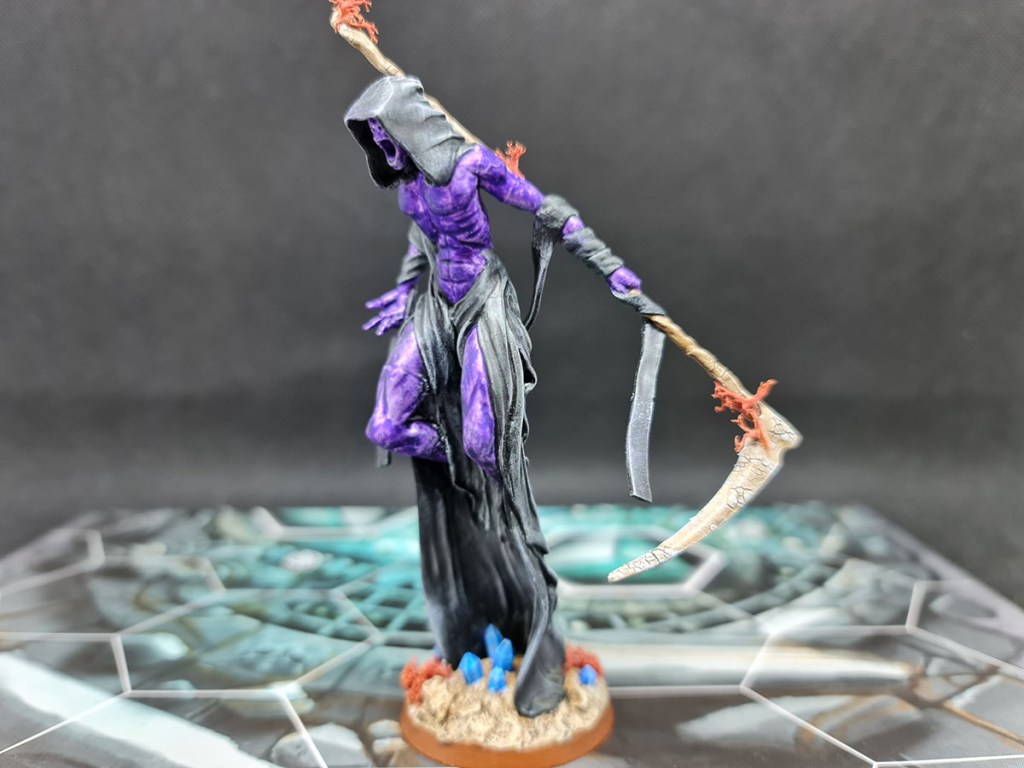 The scythe is done in the same sandstone, cracked style as the rest of my Necrons and I’m happy with how it turned out. It’s always fun to throw some texture paints around: