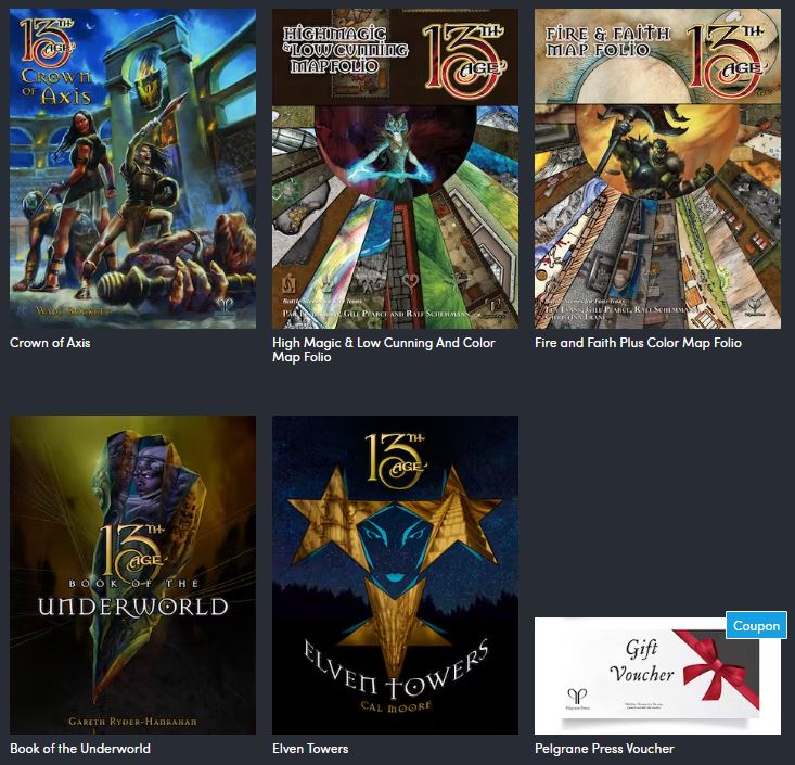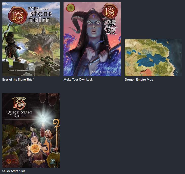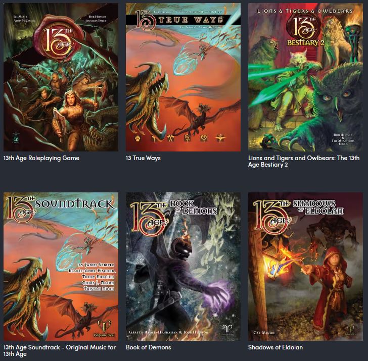Most of the range is in here, it seems. Obviously, the core book is the most important part of the nundle, but for the meagre price, the whole bundle is an absolute steal. There’s also a ton of really good community content for 13th Age, with the possibility of converting other D20 resources for use with the system. Yeah, this is a good deal that opens up a really good game.