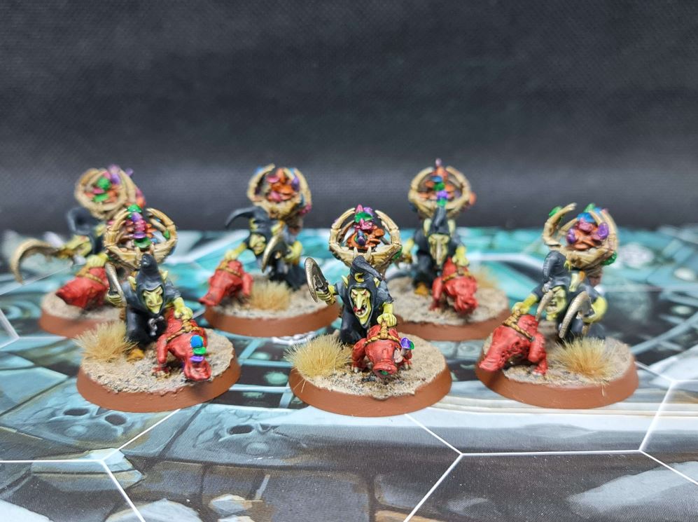 In a last push to finish the models I need for this weekend’s AoS Event, I finished up my 6 Sneaky Snufflers. I’m glad these guys are finished, and I do like the models, but I can’t say I enjoyed painting them. Getting into to some of the nooks and crannies, and really getting into those baskets on their backs was a right pain. Still, they’re done, and they look alright: