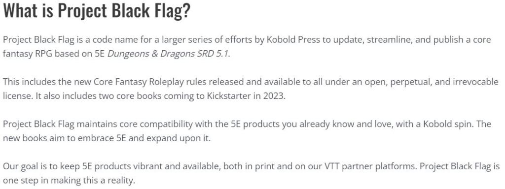 I just don’t understand the point. Are people that desperate to play 5E D&D without WotC? Is this such a great system that it’s important that we divorce it from the company that originated it? I could name quite a few systems I’d rather play of a given evening, but most local groups want to play D&D.