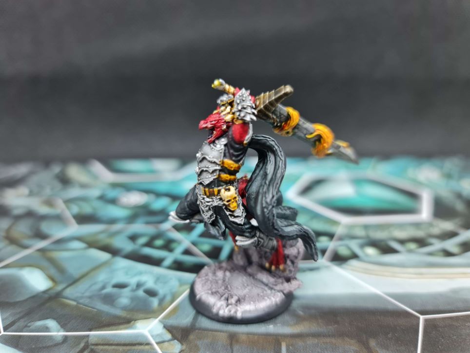 Much like last week’s Harengon Ranger, this miniature was another gift for a player. This time, it’s a red Dragonborn Paladin. I couldn’t find one that was quite what I wanted, so I ended up going for this one since it looks to be ‘mid-smite’, which I liked: