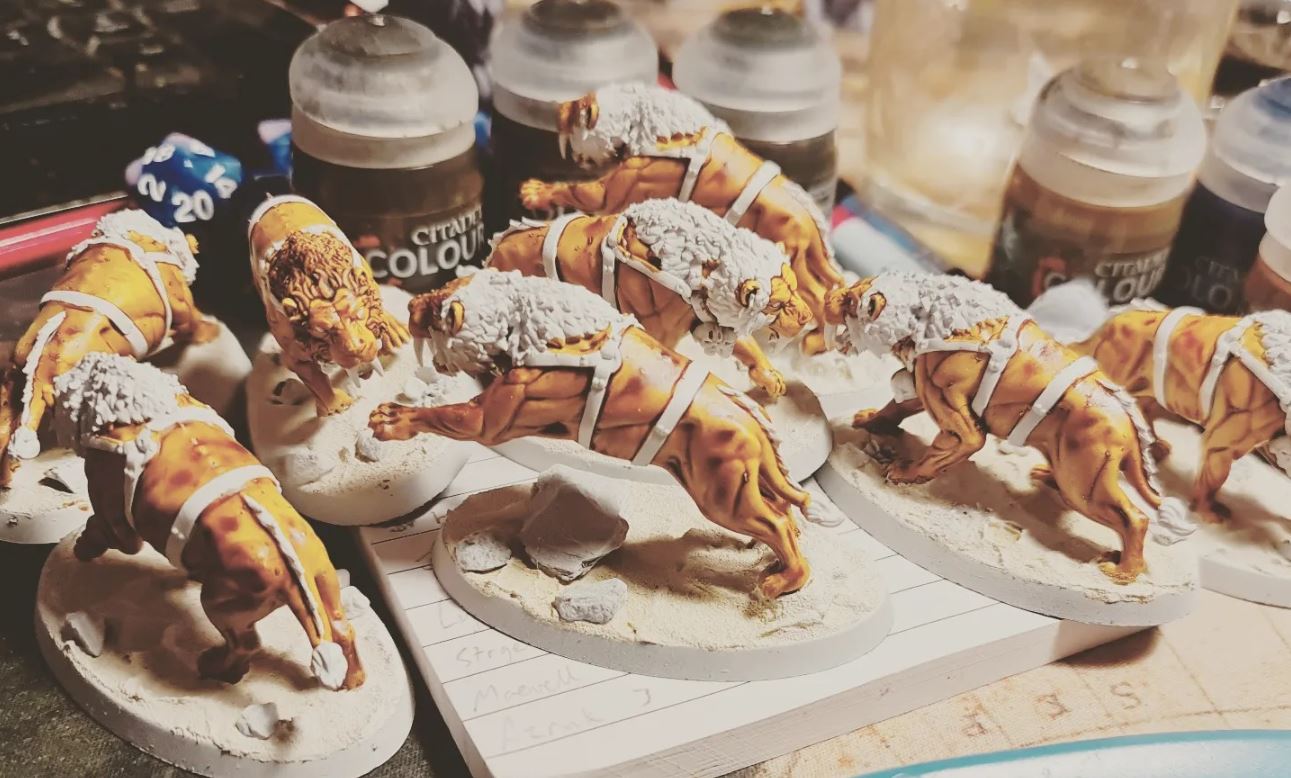Following on from painting up some Mournfang Cavalry, I moved on to printing and painting some suitable Frostsabers. The thing is, my destruction forces are all on desert bases, representing the plains of Ghur. As such, I went with less of a wintery look and settled on more of a sabertooth tiger look.