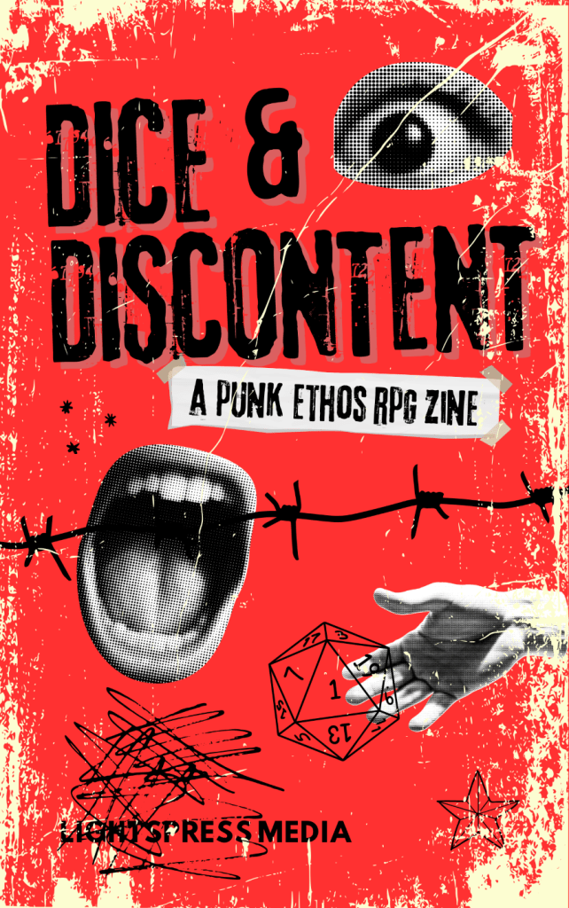 Lightpress Media releases Dice & Discontent, a punk ethos RPG zine – So, I wasn’t sure what this would be when I picked it up. It’s not what I expected. I thought it would be a wee collection of short games. It’s not, though. It’s something quite different.