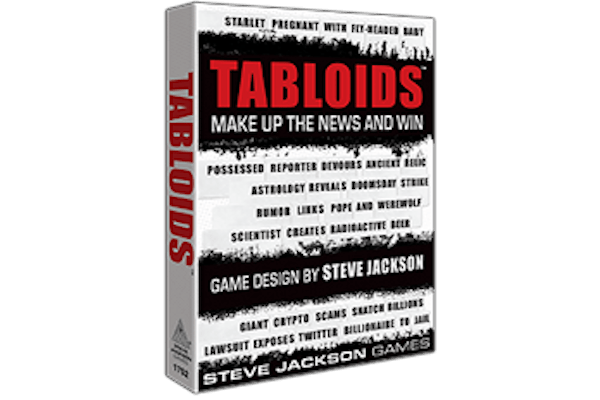 Steve Jackson Games is running a Kickstarter campaign for Tabloids – Regular readers will know my general distaste for Steve Jackson Games and their products. I’ve been wrong before, though. I’ve also flagged up interesting Kickstarters from them before. Of course, I could just be feeling a bit guilty…