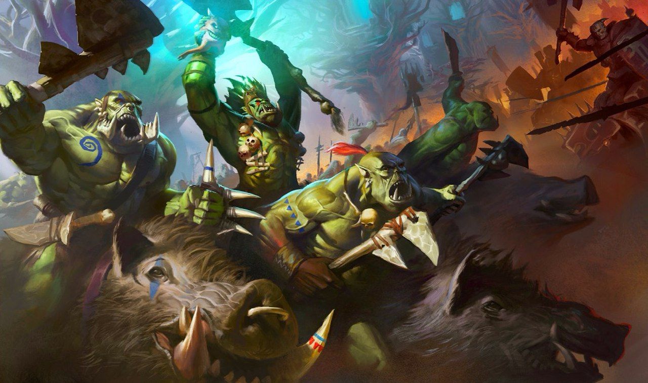 With a primal roar that shook the very trees, Gharug charged downhill like an unstoppable avalanche upon his loyal boar companion, Thunderhoof. Together, they shook the ground with each pounding step. The Marauders watched in stunned disbelief as the savage Orruk Warboss closed the distance with terrifying speed.