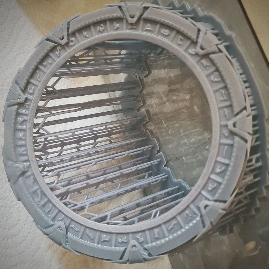 The files were interesting. They printed off a bit better than I expected. I got the feeling that some of the sculpts didn’t really take into account the medium in which they would be printed. I had some problems with some elements of the Stargate itself, with some chevrons almost peeling away in places. Similarly, some of the staff weapons were a bit thin near the heads. Most came out okay, but I lost a couple of them. Strangely two of the minis had really bad ankles that kept breaking. I tried them a few times but kept getting the same result.