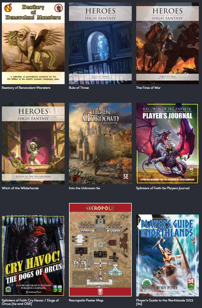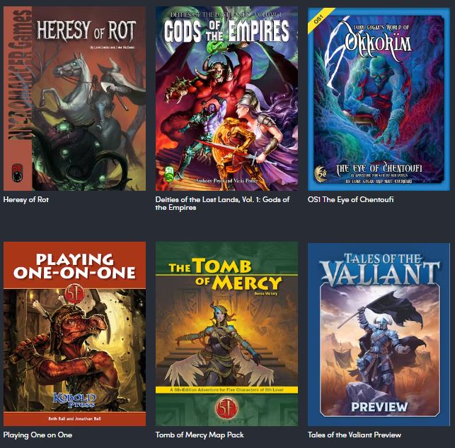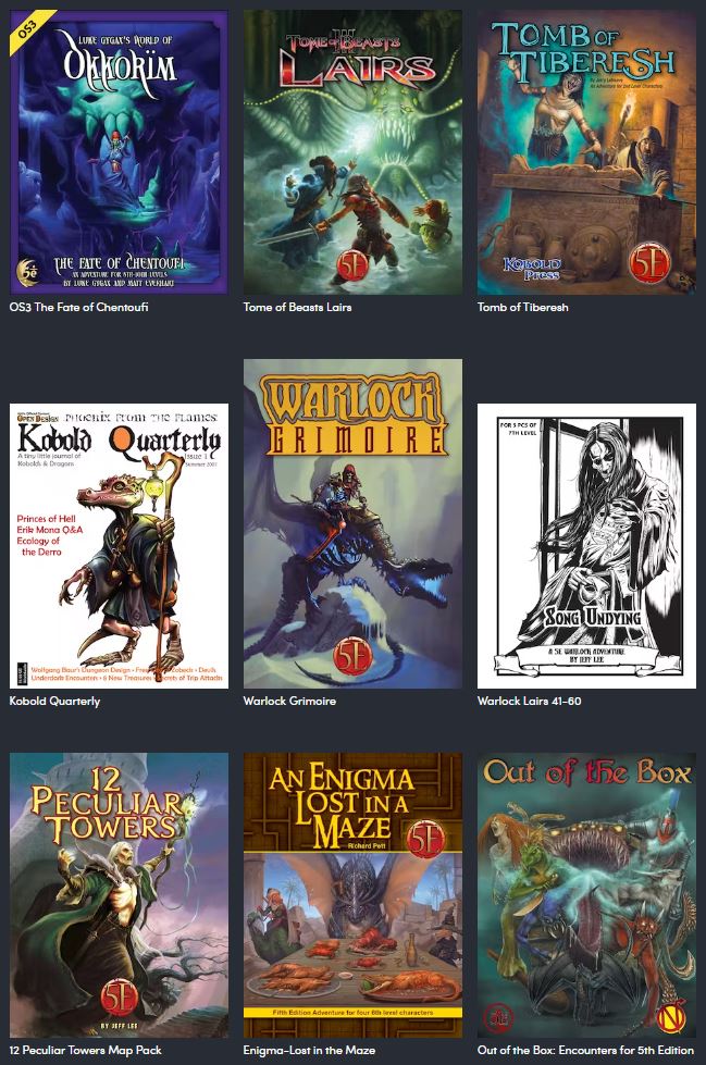 Worries of oversaturation aside, this is an interesting and appealing bundle. There are a lot of companies putting out really good third-party material for the system. Kobold Press is one of my favourite publishers, and they are well-represented here.