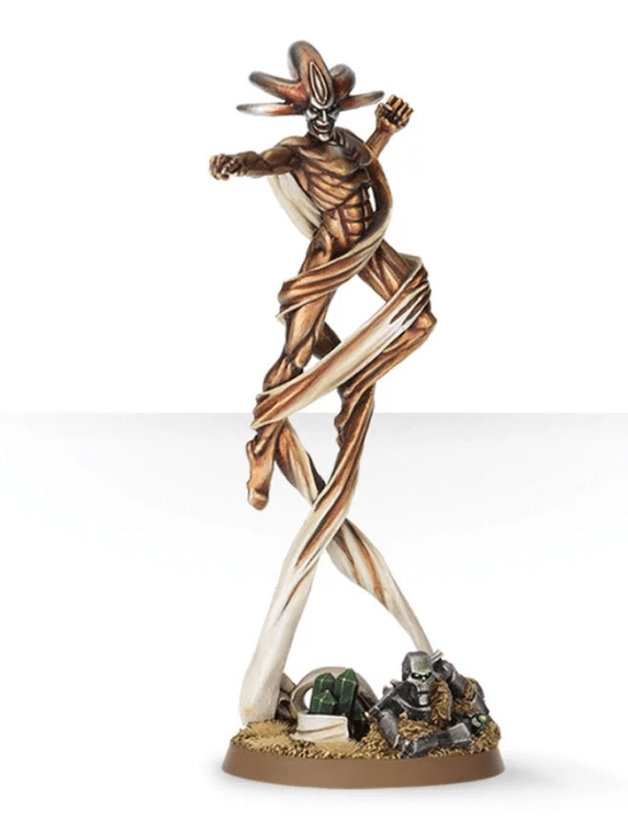 I love the vortex behind the central figure, which could highlight the reality-warping powers of the C’Tan. I like the weapon, which could be painted to represent ethereal flames. Is the scythe too Chaos-like? Perhaps. I think this could work, but it will need a good, specific paintjob to really sell it.