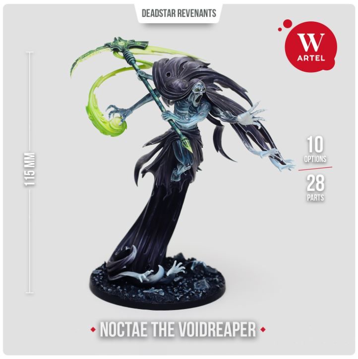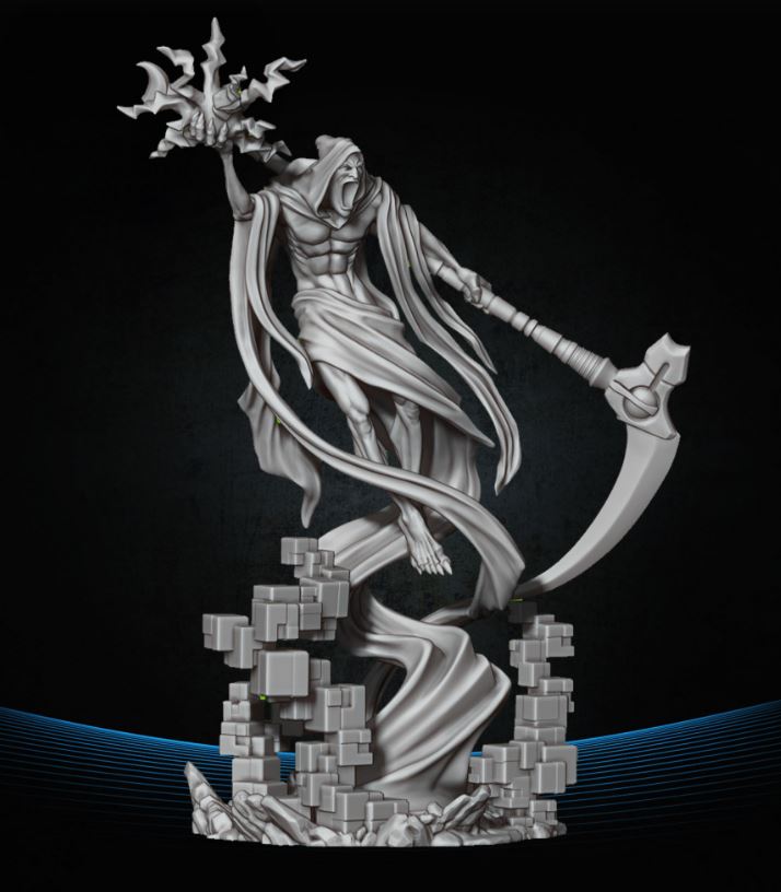Another Nightbringer proxy, the Death Reaper is quite similar to Artel’s Noctae. I prefer the pose, weapon, and “roughness” of Noctae, but I really like the basing of this miniature, the sweeping robe, and the ball of exploding energy in the hand. What’s nice as well is that this STL comes in several parts, allowing more flexibility for conversions. At around £14, this seems an okay price for the files you get.