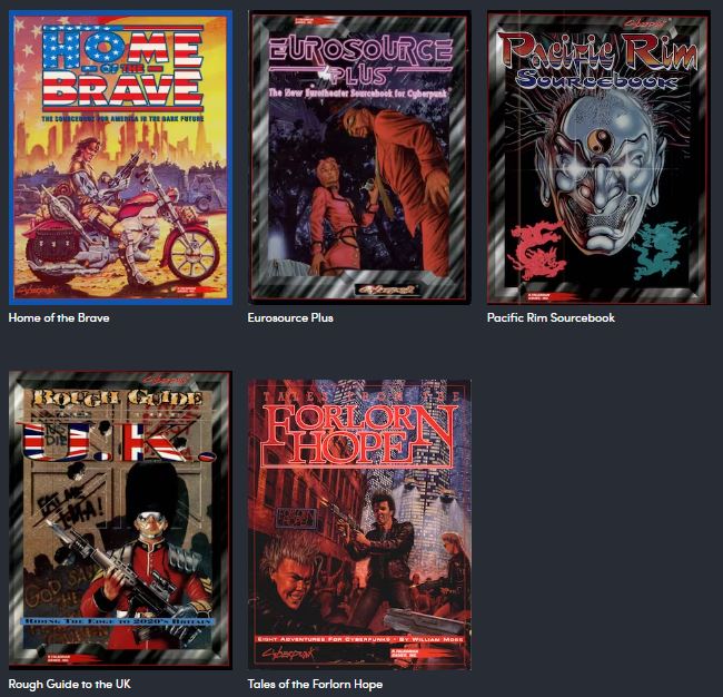 That said, you get the classic rulebook, giving you everything you really need to play, along with a bunch of sourcebooks. Most are books about settings, including the classic Night City setting, and sourcebooks for the US, UK, Europe, and the Pacific Rim.