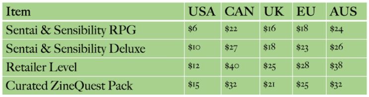 For what are small, light zines, this seems steep. As a UK resident, I don’t really like the idea of adding more than 50% to the cost of the Deluxe pledge. I do understand that postage is something that is increasing across the board, and which will likely be an issue for many campaigns.