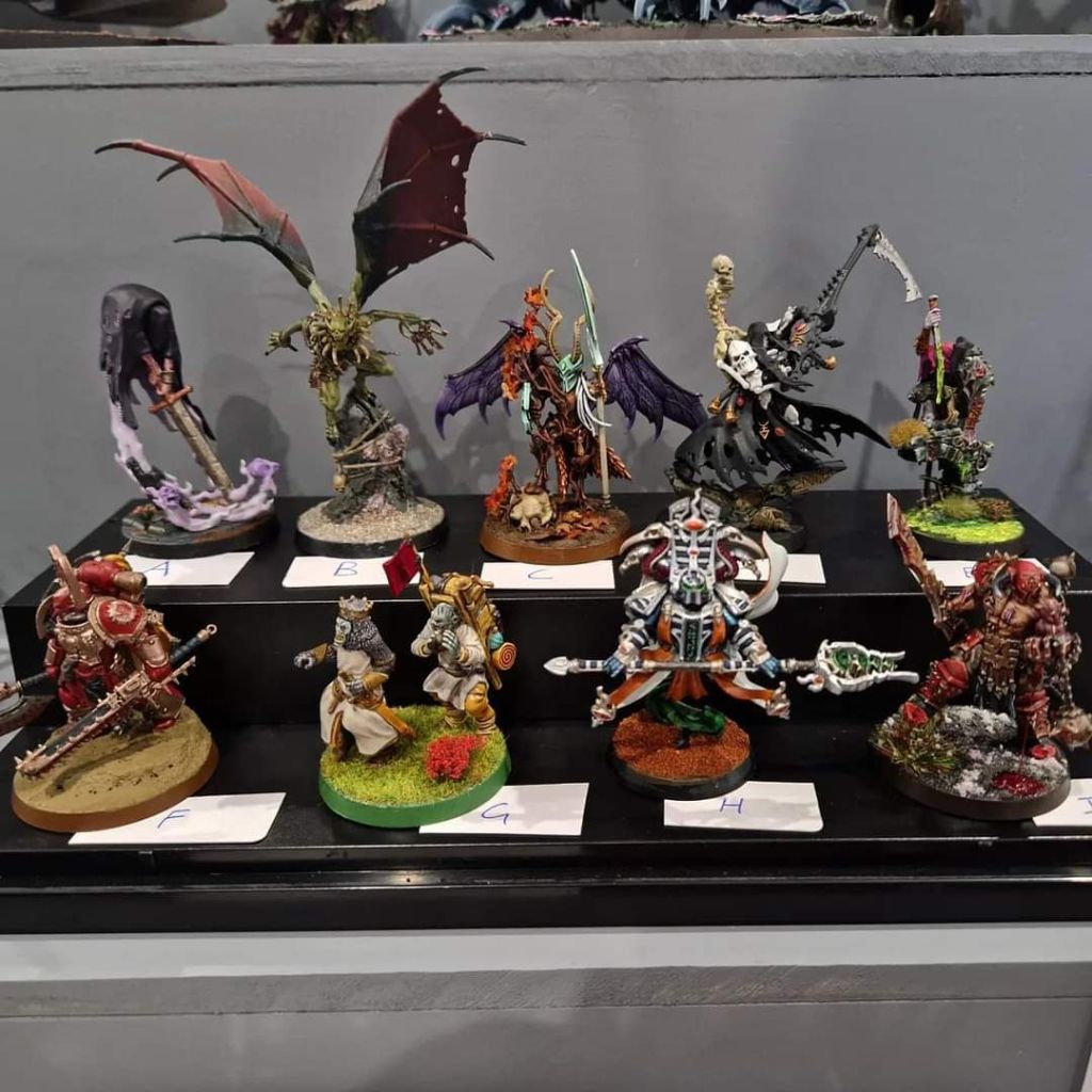 Some gorgeous miniatures here, but the most important bits of this display are the painting contest entries! Here’s a closeup of the entries:
