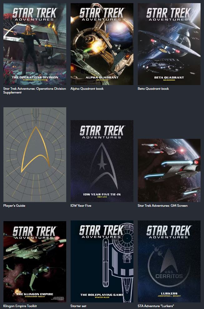 The core rulebook is here, which is obviously the most important part of the whole thing. It has everything you actually need to get this to the table. I quite like the fact that there’s a sourcebook for each service division within Starfleet, with the Command, Science, and Operations division manuals.