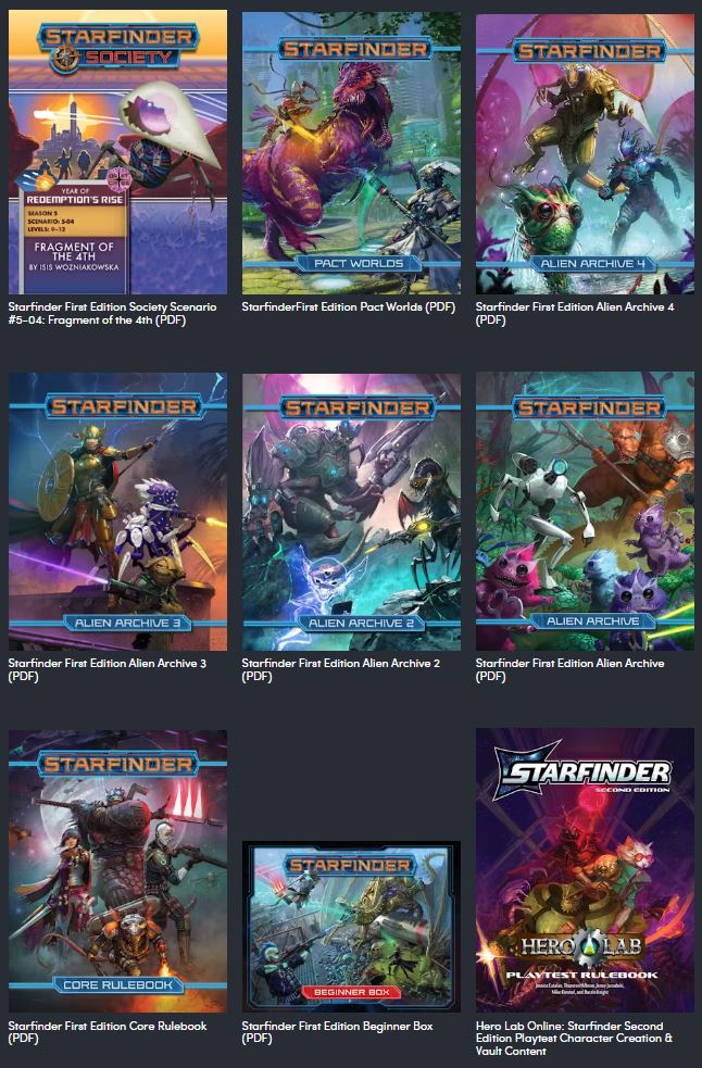 Oh, yes! The higher levels get you a ton of material for the current edition of the game. I suppose it’s a lot like the Star Trek Adventures bundle we looked at last week; it’s a big blowout sale of the previous edition before the new one comes along. For around £31, you’ll be able to grab all of this: