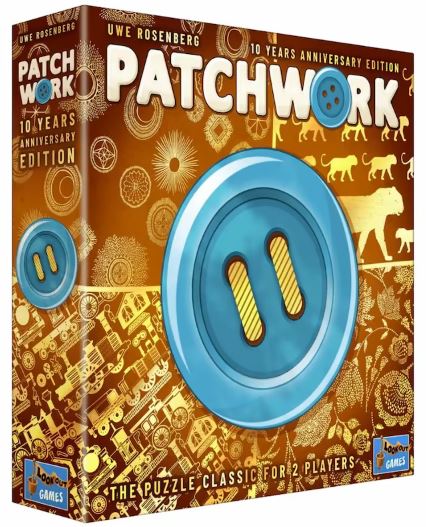 Lookout Games releases a 10 year anniversary edition of Uwe Rosenberg’s Patchwork – Patchwork is a really simple, little tile-laying game. I like it. It’s a nice, quick 2-player game with a cute aesthetic: