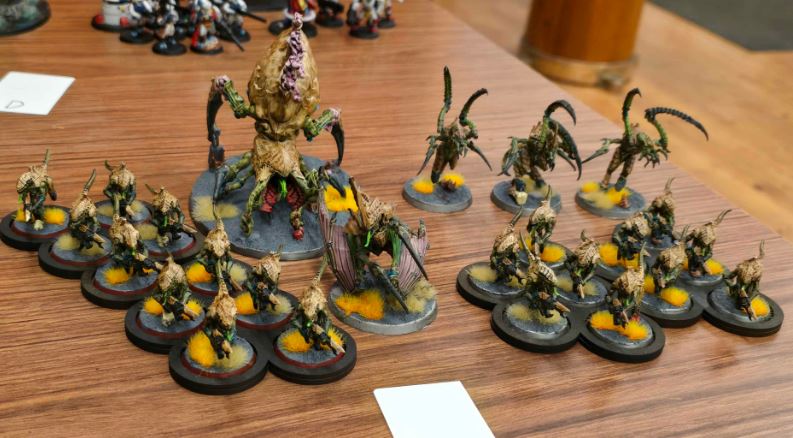 This month, we’re all committing to painting the same mini; some sort of 40K alien thing, I am told.