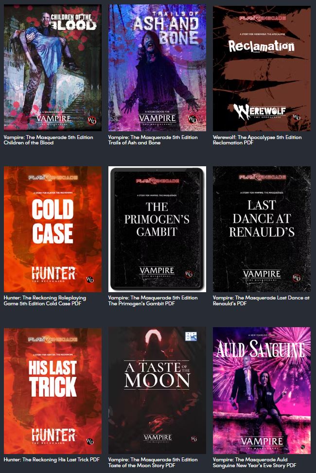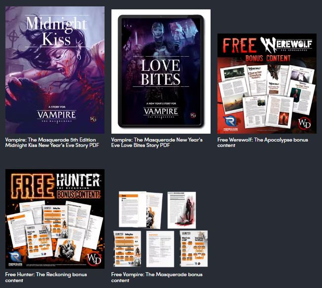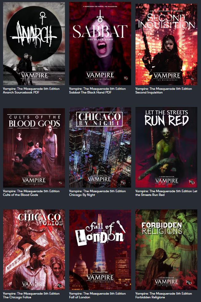This bundle is a comprehensive collection featuring some of the most beloved titles from the current iteration of the World of Darkness. For a modest price, you can get your hands on: