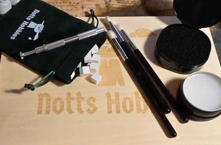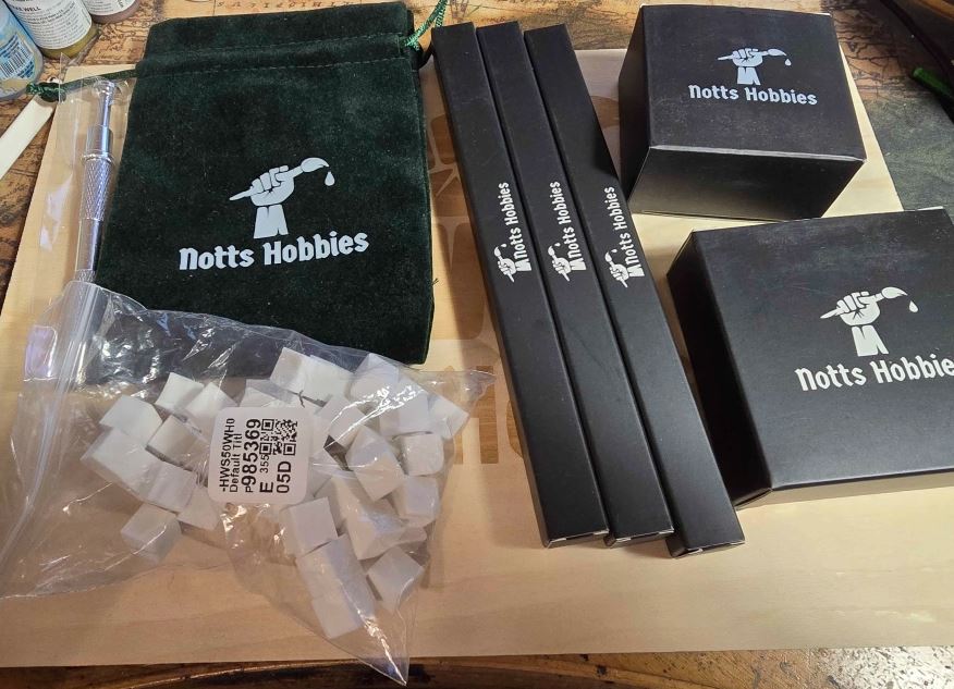 A few weeks ago, I was sent a review copy of some hobby products from Notts Hobbies. This isn’t a company I’d head of before, so I was curious. I also was very aware that I wanted to try painting some terrain pieces, and had been planning to heavily rely on drybrushing to get them done. Handy, that! A review will follow in due course, but today we will have a look at the products received.