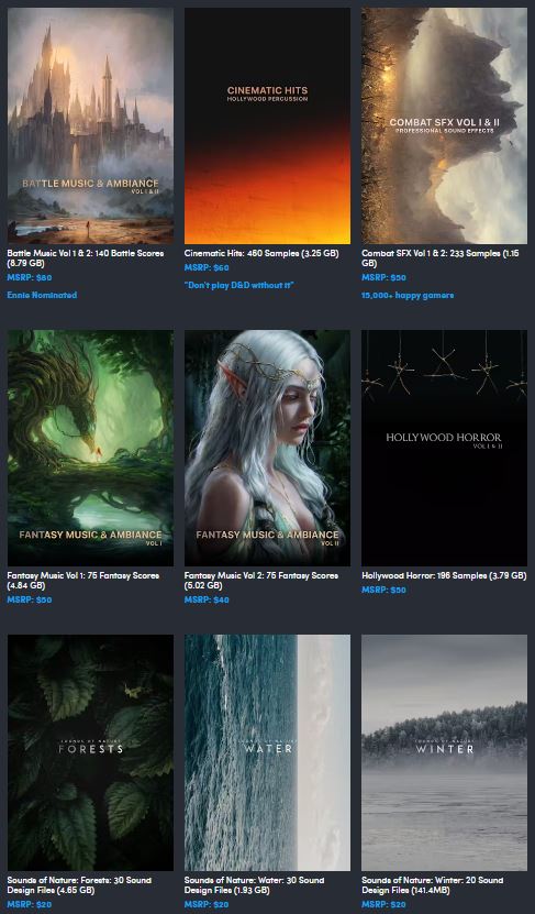 Today, let’s look at an offering from Humble Bundle that’s all about music and sound effects for your tabletop roleplaying! The whole bundle will cost you £19.28 for content with a combined retail value of over £450. Not bad, eh? Here’s what you get for your money: