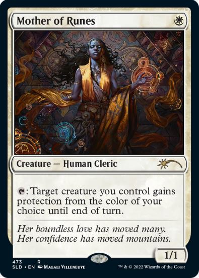 - Mother of Runes or Brave the Elements: These white cards offer protection from specific colour spells, making it a great choice against common removal spells once you know what you’re facing.