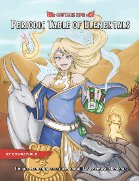 Catilus releases 5E-compatible supplement, Periodic Table of Elementals – This feels fun! A whole supplement of elemental creatures based on the periodic table? Count me in!
