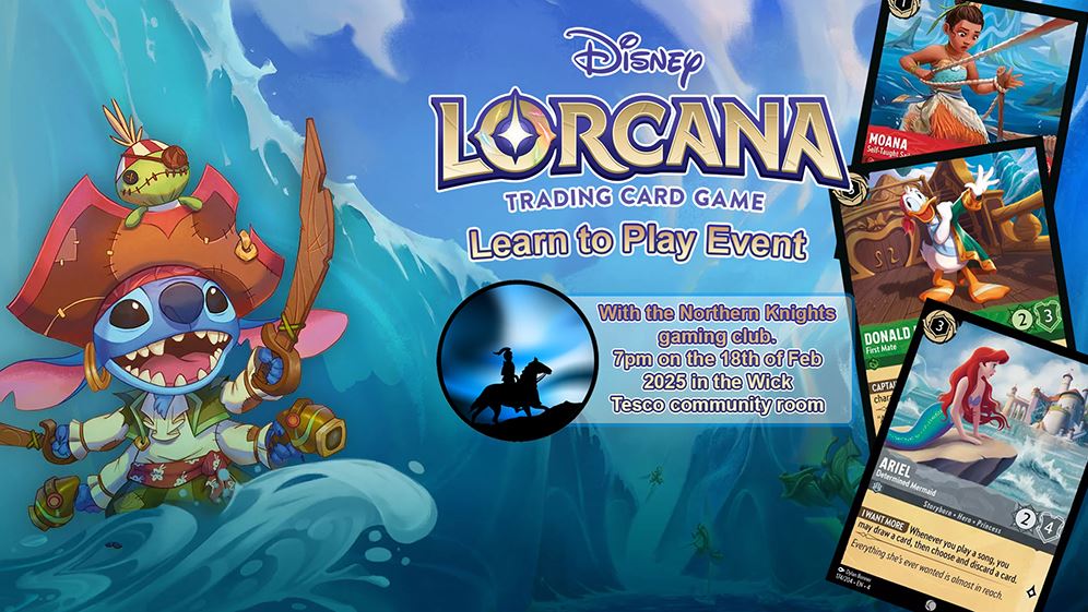 I like events where we can all play the same game. We’ve done it before with Keyforge, Ticket to Ride, and the DC Comics Deckbuilding Game. We keep threatening to do it with Clank, too. On the 18th of February, we’re doing an evening session to learn to play Lorcana.