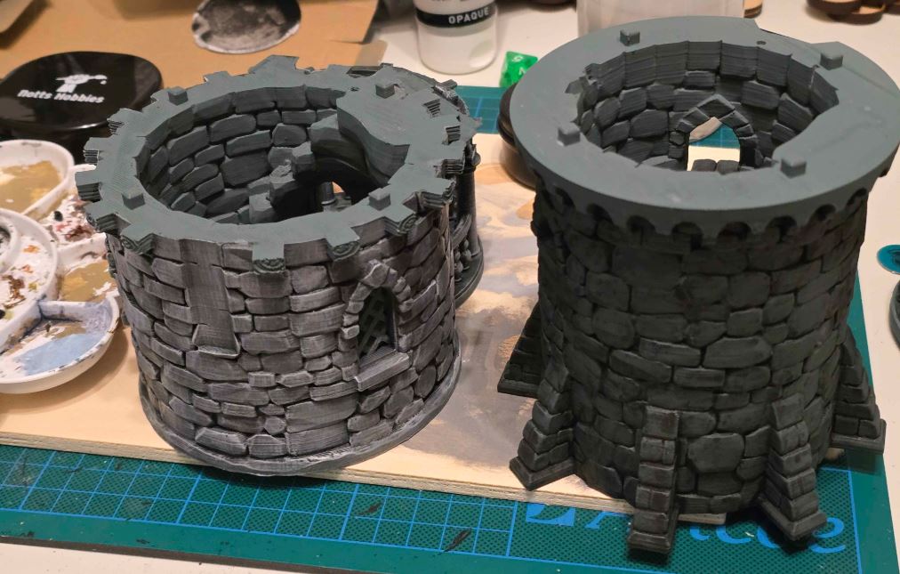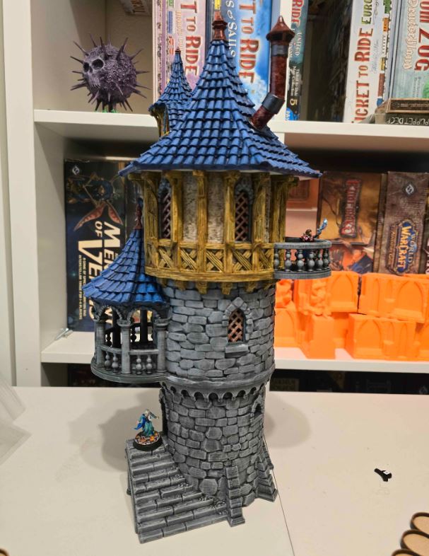 The pain continues, but with periods where I’m not too bad. With that now the care, I’ve managed to paint up a 3D-printed Wizard’s Tower terrain piece. You can see it, below: