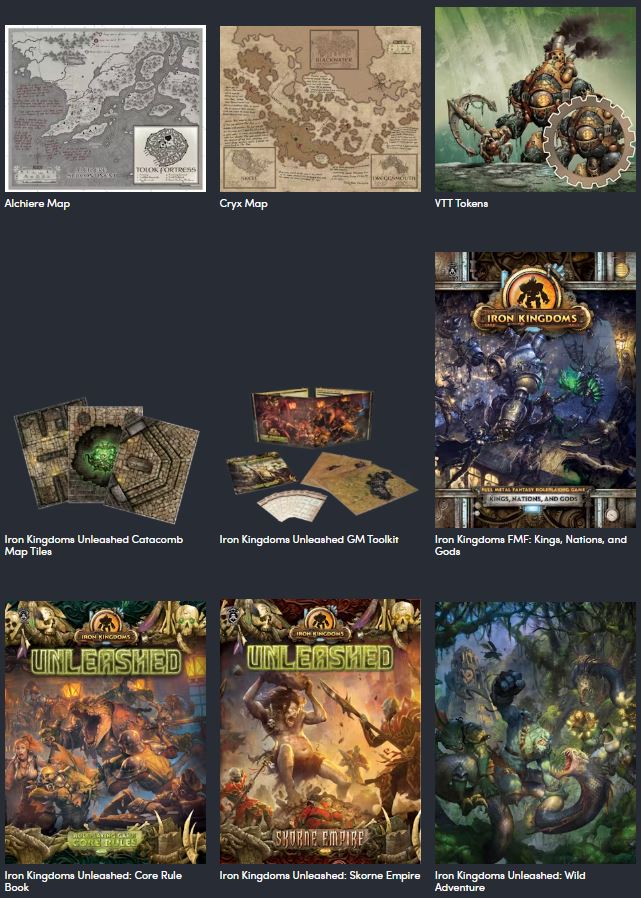 The Iron Kingdoms Collection from Humble Bundle offers an extensive selection of content, including rulebooks, sourcebooks, and campaign resources. Here’s a glimpse of what you can expect: