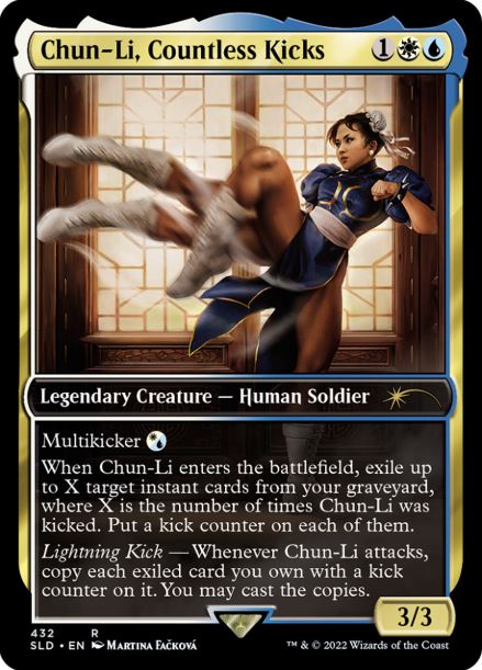 Honestly, it feels a bit backwards. A new card is created for a specific IP, and then WotC has to sramble an in-universe card to replace the licensed one. As an aside, if I do an Azorius deck, Chun-Li/Zethi is a strong cadidate for Commander. And let’s be honest, I’d rather use the Chun-Li card.