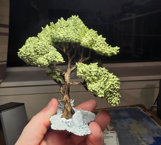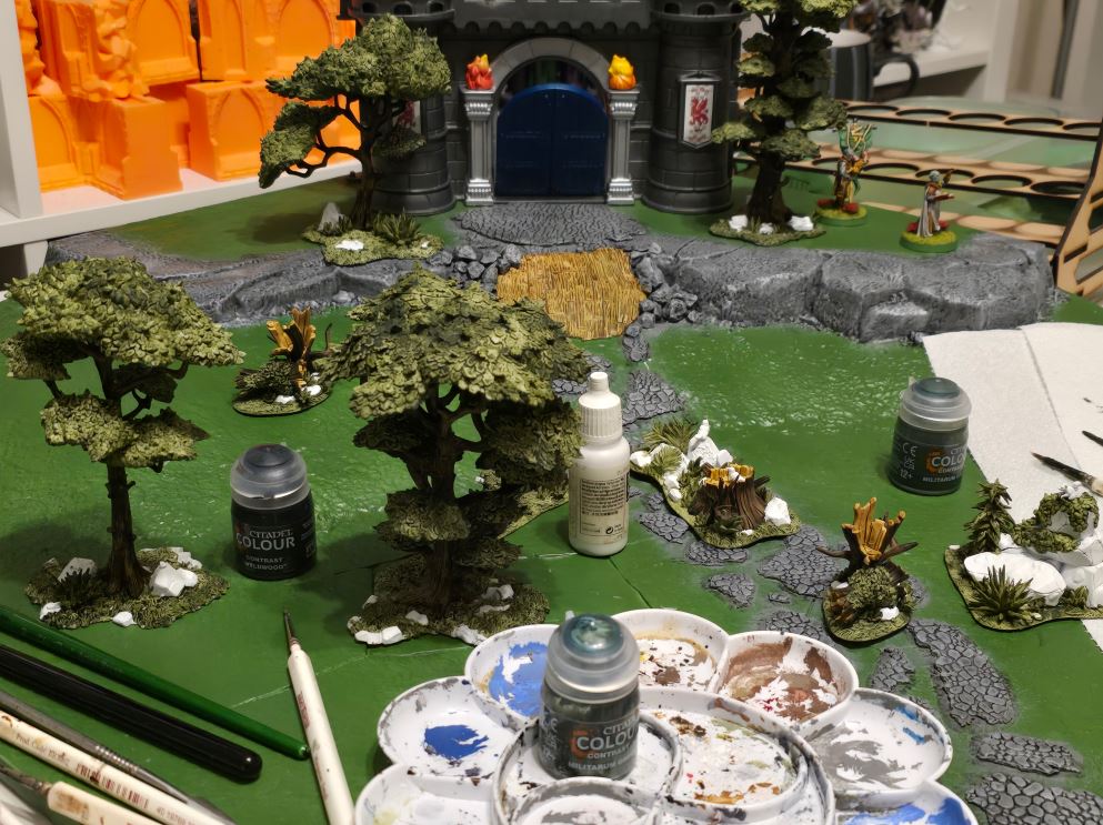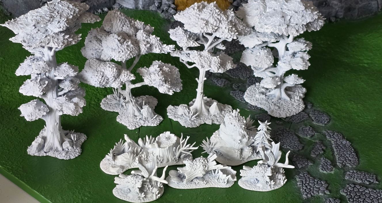 l just don’t like them. So, okay, fine, we switched to plan B and printed off a bunch of Cast n’ Play trees. They took a day each to print, so I went for 4 of them. They were also a little bit of a pain to put together. Rather annoyingly, I managed to drop one of the trees whilst priming it and it shattered. I did manage to fix it, and it was the first one to be painted up, too: