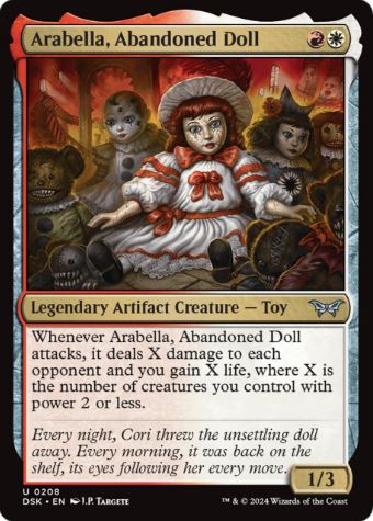 Nothing hugely exciting about this one. I do actually already have a red and white deck, but this looks more fun. I do have one really token-heavy deck with my Shroofus-led Saprolings deck, but I’d be keep to try some more token shenanigans with Arabella, Abandoned Doll. Just flood the place with tokens, bring her one, and then smash her into someone. It’s a deck where, really, you don’t actually want her on the board for most of the game. Why risk her until you have to?