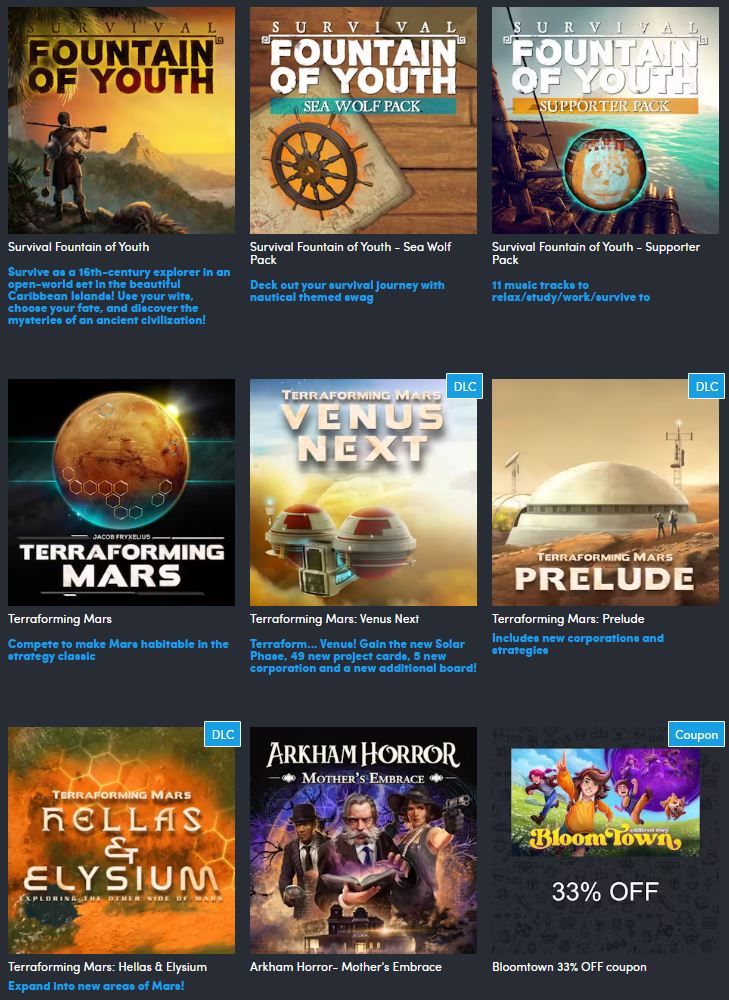 Beyond board games, the bundle also includes Survival: Fountain of Youth, Innchanted, and Amberial Dreams, adding variety to the mix.