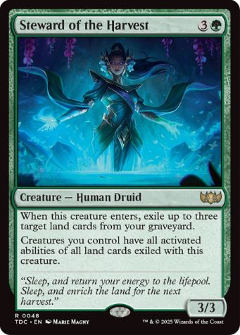 - Steward of the Harvest grants creatures the ability to inherit land abilities.