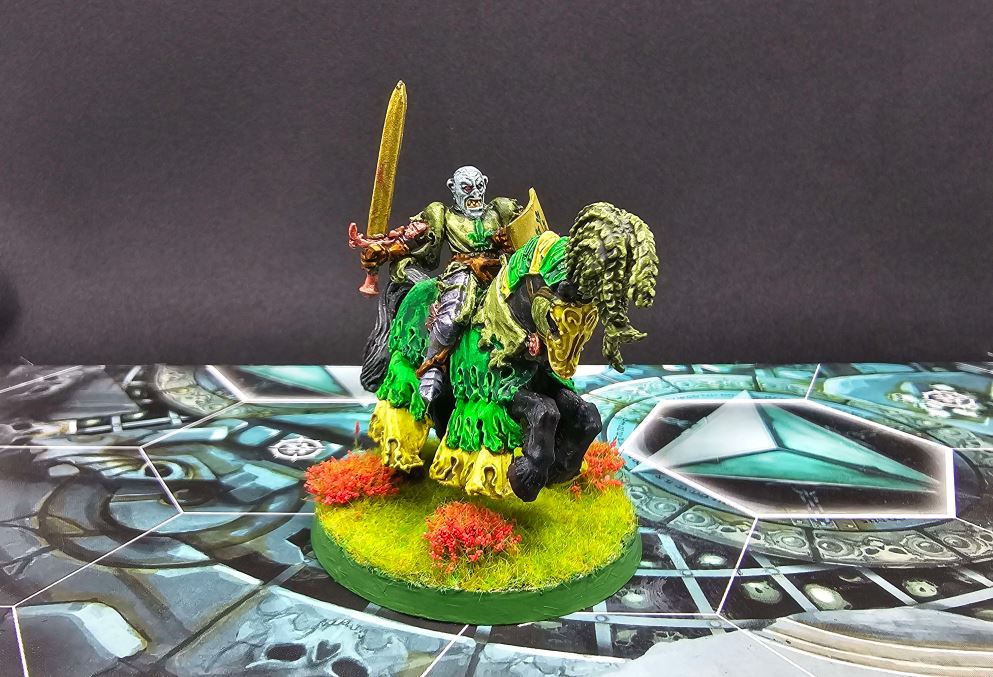 Back when I started putting together my noble Flesh-Eater Courts, I dug out my old, metal Green Knight miniature to use as my Varghulf. He was already a little small on the Varghulf’s then-60mm base. He was comically small on the Varghulf’s newer, bigger base. I replaced him with a bigger, greener Knight.