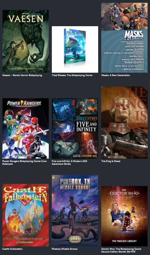 Included in the bundle are critically acclaimed titles such as Avatar Legends, Cyberpunk Red, Apocalypse World, Savage Worlds, Runequest, Vaesen, Fear itself… There’s a lot. The bundle offers dozens of games across multiple genres and systems, and it must be said that there’s real curation here; not just volume, but variety and vision.