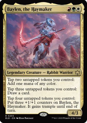 After some deliberation over what commander to use, I have settled on Baylen, the Haymaker. I like tokens, and I can adapt the cards I buy to later on use them with Jetmir, or with Arabella.