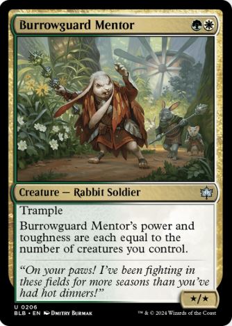 The rest of the deck is filled with the usual board wipes, blink/protection, removal and ramp to get me to where I need to be, but one of the other priorities is on buffing the rabbits once I have them, this is easy in tribal decks and even easier when you are creating potentially dozens of the same creature type. Cards like ‘Strength of the Coalition’ or ‘Overwhelming Encounter’ work well as a buff piece for all the rabbits, ‘Inspiring Leader’ also boosting tokens and support cards like ‘Valley Questcaller’ and the aptly named ‘Rabbit Response’ providing buffs to all rabbits and providing a little scry engine for when I need to dig a burrow in my deck.