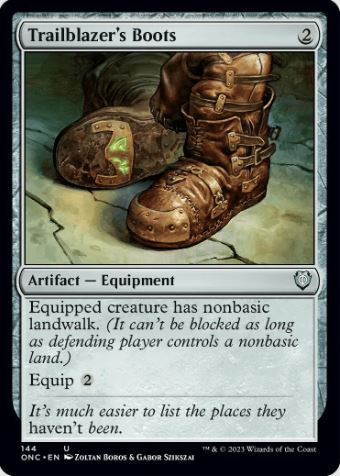 Firstly to make sure Cadira does damage, her inherent trample makes that a good bit easier but there were sneakier ways to get through with less risk of her being taken out. Some great pieces are equipment like ‘Trailblazer’s Boots’ or ‘Saddle of the Cavalier’ to get around blockers, ‘Gilded Pinions’ to give flying and some tokens on entry as well as instant buff pieces like ‘Poison the Blade’ to give deathtouch or spells like ‘Moment of Valor’ or ‘Take Up the Shield’ to give indestructible to keep Cadira safe when opponents react.