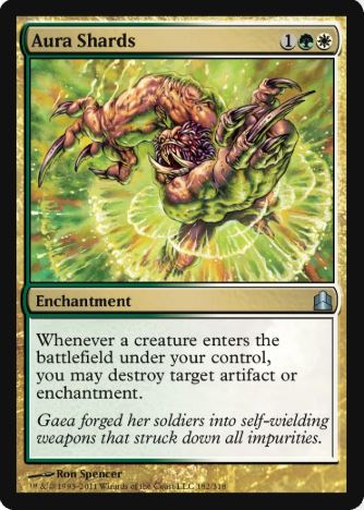 - Repeatable Removal: Unlike Reclamation Sage or Disenchant, Aura Shards doesn’t stop at one target. Every creature becomes a removal spell.