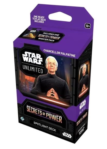 FFG releases a Palpatine-themed deck for Star Wars Unlimited – The Chancellor Palpatine Spotlight Deck is one of two ready‑to‑play decks released alongside Star Wars Unlimited’s new Secrets of Power set. It is designed to showcase the set’s new politics‑and‑scheming mechanics and give players a grab‑and‑go Palpatine‑led option for Star Wars: Unlimited.