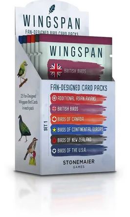 Stonemaier Games releases sets of fan-designed cards for Wingspan – Stonemaier Games is releasing fan‑designed promo packs for Wingspan. There are six regional packs, each containing new bird cards vetted and printed in collaboration with Elizabeth Hargrave and the fan creation team.